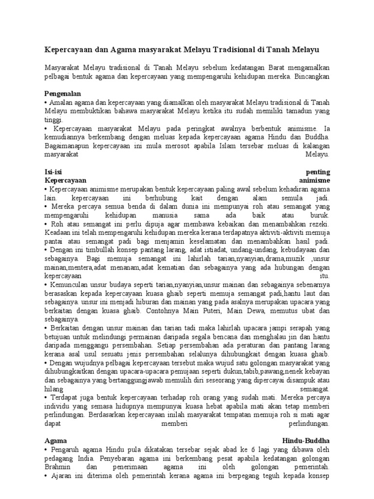 Kepercayaan Dan Agama Masyarakat Melayu Tradisional Di Tanah Melayu Pdf